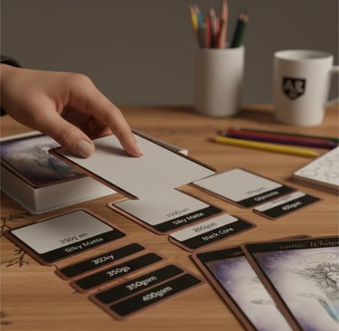 Black Core: This is the gold standard for professional tarot and playing cards. It’s 100% opaque (crucial for tarot!), and it has a “memory” that gives you that crisp, snappy "Snap!" when you shuffle.