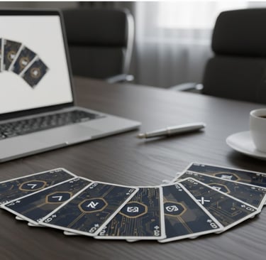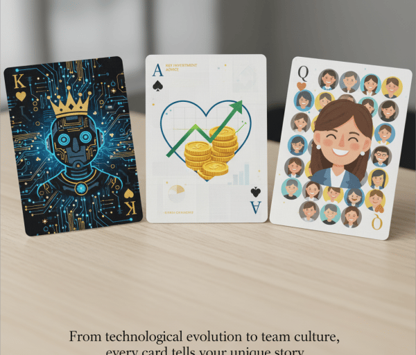 A financial firm’s deck where each number card offers a key investment tip, and the Jokers are witty cartoons debunking common market myths.